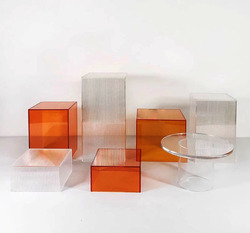 Xinkeda คริลิคคริสตัลชั้นวางแบบใส,ชั้นวางโชว์ลูกบาศก์อะคริลิคใสพร้อมฐานกลวง